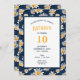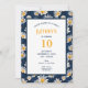 This charming birthday invitation features a delightful blend of vintage-inspired style and modern elegance. The design showcases a vibrant arrangement of colorful daisies set against a sophisticated blue denim background, creating a look that is both playful and sophisticated. Perfect for celebrating special birthdays, this invitation is sure to make a memorable impression on your guests.