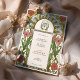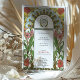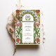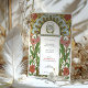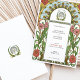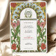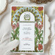 This beautifully illustrated Art Nouveau wedding invitation features a vibrant floral border with soft white daisies accented by golden centres and lush pink zinnias surrounded by flowing green leaves. The symmetrical design combines natural elements and ornate detailing, embodying the elegance and charm characteristic of the Art Nouveau style. Rich earth tones, intricate linework, and decorative accents create a romantic and timeless aesthetic, perfect for couples seeking a vintage, nature-inspired theme.