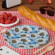 Daisies, wild flowers on blue paper plate