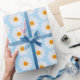Wrapping paper shown with a lovely blue flowers and white daisies flower print on a light blue background. Customise this item or buy as is.