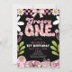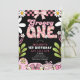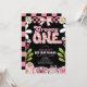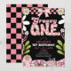 Daisy 1st Birthday Pink and Black Retro Birthday Invitation