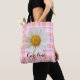 Daisy and Custom Name on Pink Plaid Pattern Tote B Bag