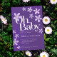 Cute oh baby daisy flowers baby shower invite, featuring loose hand painted daisy flowers on a purple background. Personalise with your own baby shower details. © Uniquely painted daisy flowers in gouache and designed by Sarah Trett exclusively for www.mylittleeden.com