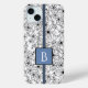 Daisy Black White Floral Pattern Blue Monogram Case-Mate iPhone Case