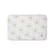 Bath mat design features an original marker illustration of white and yellow daisy flowers.