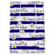 Blue and white watercolor striped pattern with white daisies and happy birthday text.