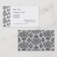 A custom business card template with simple an elegant damask pattern of daisies and leaves in black on white. Customise It to change background colours, pick your fonts and add custom text and more, even save your design for later.