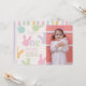 Daisy Floral Bunny 1st Birthday Photo Invitation