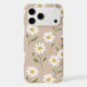 A classic and elegant design featuring a repeating pattern of white daisies with yellow centers and long green stems, scattered artistically across a sophisticated taupe or khaki background. The simple, realistic style gives it a timeless, vintage botanical aesthetic. This beautiful floral pattern is perfect for those who love nature, cottagecore, or chic, muted color palettes. It offers a graceful, natural, and stylish touch to any item.