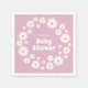 Daisy Flower Wreath Pink Groovy Retro Baby Shower Napkin