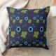 Daisy Flowers Dusty Mustard Yellow Blue Navy Cushion