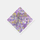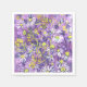 Paper napkins featuring delicate floral artwork in violet and yellow shades, blooming daisy flowers and some other wildflowers. Life drawing from artist's sketchbook, mixed media - tissue paper collage, ink pen and markers sketch.