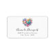 Address labels with a beautiful illustration. A heart-shaped bouquet of flowers in pastel blue, green, purple and yellow. With a lovely blue butterfly hovering in front.