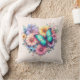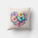 Pillow with a beautiful illustration. A heart-shaped bouquet of flowers in pastel blue, green, purple and yellow. With a lovely blue butterfly hovering in front.
