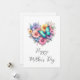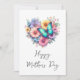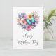 A flat Mother's Day card with a beautiful illustration. A heart-shaped bouquet of flowers in pastel blue, green, purple and yellow. With a lovely blue butterfly hovering in front.
