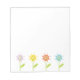A Modern Floral Notepad with an original illustration of dainty daisies a contemporary take on classic daisies, rendered in a harmonious blend of bold and cheerful colours. The red, purple, blue, and yellow hues create a visually striking and uplifting design that adds a pop of personality to your workspace.