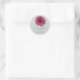 A magenta flower is silhouetted against a soft grey on this versatile sticker. Can be used for a restaurant, cafe or caterer, apparel, gift or any other kind of retail store or just for personal use. Great as envelope seals, promotional pieces or sealing customer purchase bags. Available with alternate flowers with matching products.
