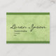 A business/ Profile card made with an original background in shades of green with texture and daisies faintly etched into the background. Ready to be customised.