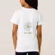 A whimsical ink drawing of a variety of flowers emphasizing the daisy. The name Daisy appears in text across the chest. A playful and innocent mood is created by colors of black, white, red, purple, yellow and green along with a lower case text. On the back is a single daisy. This tee should delight any girl with the name Daisy.