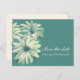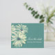 Stunning fine art painting osteopermum calenduleae wedding save the date invitation. Simple and romantic wedding save the date invite, in green and ivory shades with a touch of purple. Classic wedding design part of the daisy romantic wedding stationary set. Edit this save the date wedding postcard with your names, dates and own wording. Uniquely painted in gouache on dark paper by artist and designer Sarah Trett.