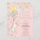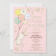 Sweet bunny themed first birthday invitation for a baby girl featuring a white bunny , some balloons and daisies on a light pink background. This some bunny is turning one first birthday invitation is ideal for someone looking for a modern style invitation.