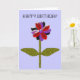 This beautiful floral greeting card features a digital image of a daisy with a green stem with two green leaves on it and purple, red and black coloured petals with a purple centre. The petals look like they are made of shining plastic that has caught the light and caused an iridescent effect. The background is a calming blue colour. The text on the front says happy birthday but is customisable so you can adapt it for other special occasions too. The inside of the card has been left blank so you can add your own special greeting. To do this simply click on the “customise it” button. Here you will be able to add your text using a range of fonts and colours. You can also change the background colour of the card.