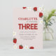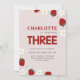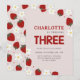 Daisy Strawberry Light Grey 3rd Summer Birthday Invitation