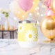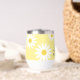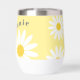 Colourful yellow and white wine tumbler featuring an all over daisy design. Dark grey typography can be personalised with a name. This cute tumbler is perfect for a bridesmaid gift. Also great for a girls trip or monthly book club meetings. Coordinating daisy items available in my store.