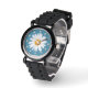 A simple daisy on a blue background. He loves me! Glitter watch straps in red, pink or silver.