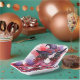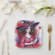 This paper plate features a whimsical witch wearing red pink daisies watercolor print.