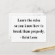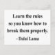 "Learn the rules so you know how to break them properly." - Dalai Lama