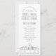 A deco skyline-themed wedding program for a wedding taking place in the beautiful city of Dallas, Texas. This wedding program card features a stylised illustration of the city's unique skyline with its name underneath. This is resting underneath your wedding day information in a matching open-lined style.
