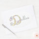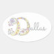 Pretty girls name sticker ideal for embellishing books and to personalised girls items. Stickers reads Dallas or you can personalise with your own name starting in D. Graphic decorative D with hearts and flowers art © Designed by Sarah Trett www.sarahtrett.com for www.mylittleeden.com