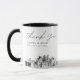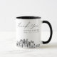 Modern Dallas skyline coffee mug favour gift with "thank you" script. The design showcases a stunning sketch with the ability to customise your names and exact location. Enter the Zazzle design tool for additional customisations.