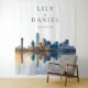 This elegant Dallas skyline watercolor wedding photo booth backdrop can be personalized with your information in modern typography. Designed by Thisisnotme©