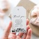 The quality and weight of the paper used was excellent. I love the feminine floral design. I gave received so many compliments on the unique cut of the tag. I also use these tags as a business card. This is my 3rd time ordering this design. I love it! I was very pleased with the printing. I was excited that I was able to print separate messages on both sides of the tag. Very clean look.