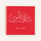 This design features a hand drawn sketch of the Dallas skyline on burgundy.