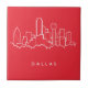 This design features a hand drawn sketch of the Dallas skyline on burgundy.