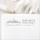 This label features a stylised illustration of the city's unique skyline with its name underneath.