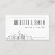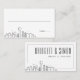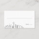 A set of unique wedding escort cards for a marriage taking place in the beautiful city of Dallas, Texas. They feature a stylised skyline of the city on one side, with a spot for the person's name to be written in. On the reverse side is a place for the wedding couple's names and wedding date with the skyline also presented in the bottom corner.