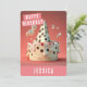 A cute birthday card featuring a dalmatian themed birthday cake on the front with "Happy Birthday" in a white, all-caps bold font. Personalise the front by adding your name(s). The inside of the card features space for your typed or handwritten message.