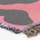 A quality printed throw has its advantages. This is a much finer weave throw than its loopier cousins, and though lighter, it is worth the investment for custom room accessorizing. The back is much prettier than the typical brown, and the fringe on the long sides very vivid, the selvage nicely done. Before photographing, I washed the throw in cold water, delicate, with a thicker woven throw the same size. On tumble dry low, this throw was dry in half the time as the other. This is a very practical quality if you use throws for furniture covers or to wrap up in frequently. The sleekness of the fabric makes it a great layer for accenting or protecting without the feeling of sitting on too much stuff. Perfect for napping or when you feel a light chill coming on. The color printing is beautiful and on this fabric, matched the design and color of my Photoshop image. This is an advantage for blending room fabrics and colors. The fringe on the short sides prints the colors from the design image and therefore varies from the side fringe. I streaked a white fractal line through the plaid pattern to give the illusion of weaving. This printed as crisp as an illusory thread, and put some white in the short side fringe, showing another advantage of print vs loomed- for artistic purposes, line lines, detail, and color integrity can be planned and preserved. My loomed throws have color limitations and more of a needlepoint texture. Print throws reproduce an exact image. The throw felt a little stiff straight out of the package, but this went away in the first delicate wash. Of course I searched the wash water for ink or bleeding and there was none.