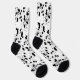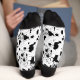 Dalmatian Spots Pattern sock design for animal print lovers. The animal print features big and small black spots. The design also includes black ink splatters making it a unique one-of-a-kind Dalmatian skin pattern. A cute dog print pair of socks that will make a great gift to your friend, coworker, or daughter.
