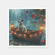 Set sail into the magic of the holiday season with this beautifully detailed illustration, showcasing a proud dog sitting in a festively decorated boat, gliding across a serene Christmas lake. The twinkling lights from nearby pine trees reflect off the water, casting a warm, festive glow that enhances the cosy ambiance. Ornaments dangle from the boat's sides, while glowing lanterns light the way, creating a scene that captures the true essence of Christmas warmth and joy. This nostalgic artwork brings a touch of holiday magic to any space, perfect for those who cherish the spirit of the season.