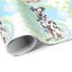 Cute gift wrap for nurses, doctors, medical students, veterinarians, vet techs or just a get well present. A cute black and white spotted Dalmatian dog has a stethoscope around it's neck and eyeglasses and sits against a modern swirly design in soft aqua blue, light lime green and white.