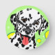 Colourful dog art featuring white Dalmatian with black spots against a light green background and yellow circles