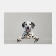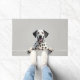 The soft cool gray background enhances the contrast of the black and white spots, creating a clean and modern look perfect for entryways. Designed with extra space at the top and bottom, it allows easy personalization with names, welcome messages, or custom text—making it ideal for unique dog-themed doormats and thoughtful gifts.