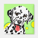 Colourful dog art featuring white Dalmatian with black spots against a light green background and yellow circles