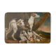 This design features a painting by the English artist James Ward (1769–1859), who specialised in depicting animals. It shows a family of Dalmatian dogs: there is a male dog standing upright beside a female dog lying on the ground with two young pups suckling from her. All of the dogs have the white coats with black or brown spots that is typical of the Dalmatian dog breed. This breed of dog is thought to have come from present-day Croatia and its historical region of Dalmatia, and it was used originally as a hunting dog, but it is now celebrated for its gentle temperament and beauty.