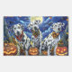 Unleash the spooky spirit with this eerie Halloween design featuring a pack of dogs under a dark, moonlit sky, surrounded by flying bats and glowing pumpkins. Perfect for those who love a touch of frightful fun with their furry friends!